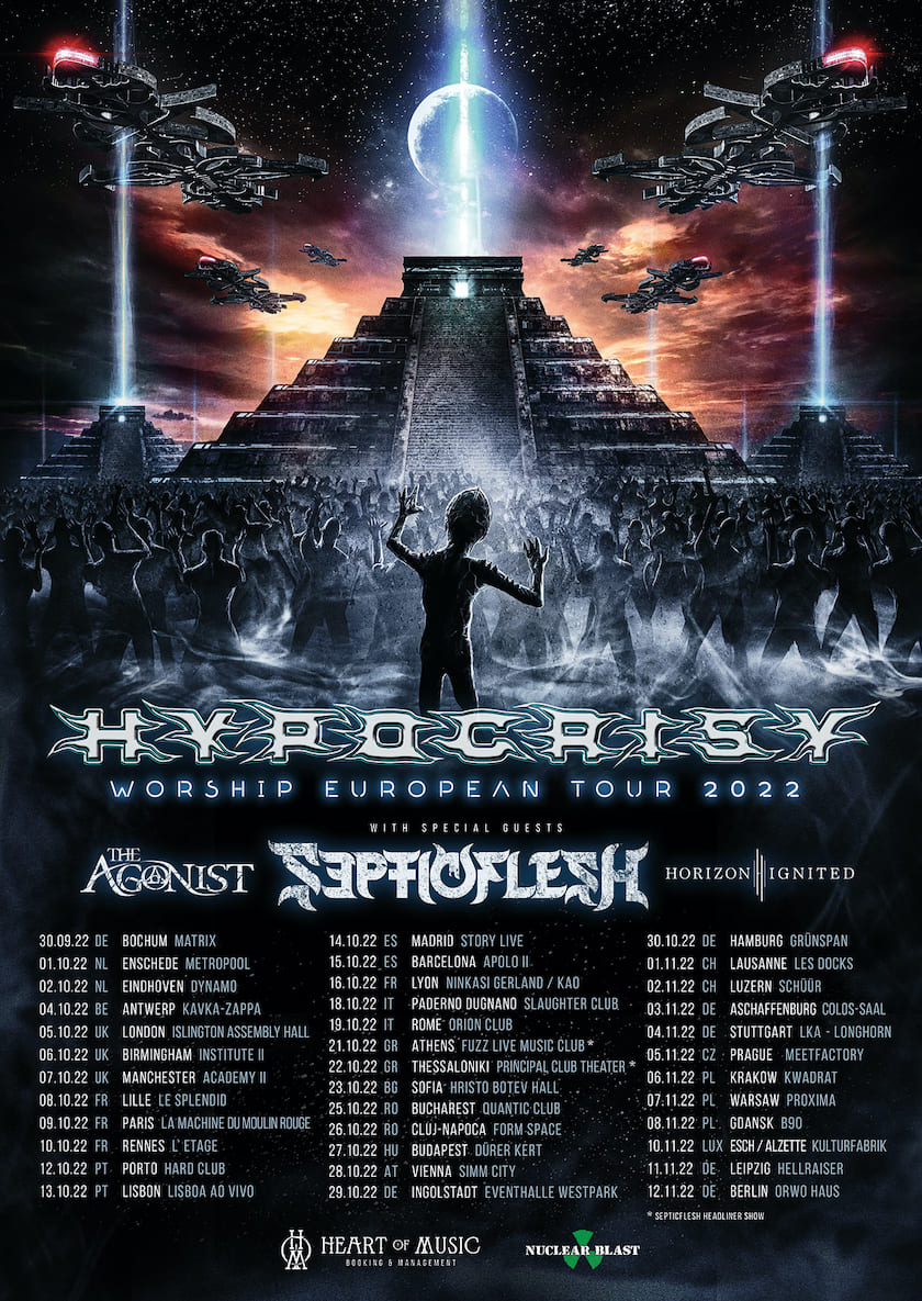 Auch die Support-Acts für die kommende „Worship-Europatour“ wurden bereits bestätigt. Hypocrisy werden begleitet von Septicflesh, Horizon Ignited und The Agonist.
